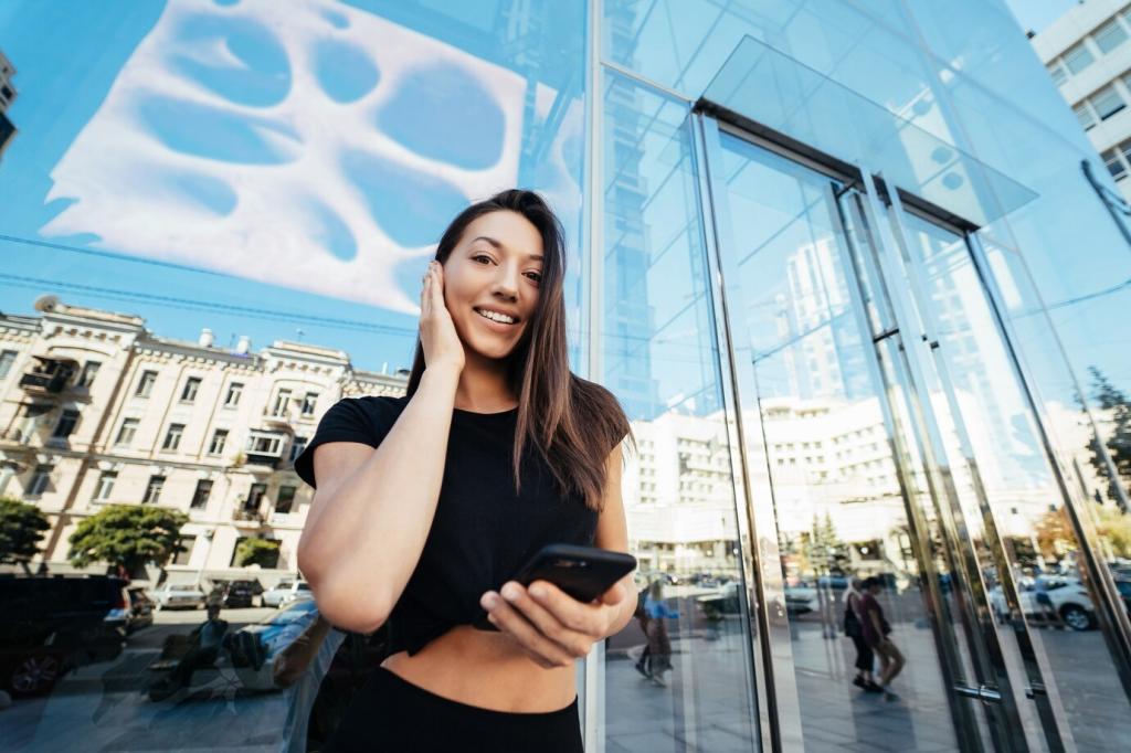 Ein Tilt‑Shift‑Objektiv korrigiert stürzende Linien bereits beim Fotografieren und erhält die Würde hoher Fassaden. Weitwinkel schafft Nähe, darf aber Kanten nicht verzerren. Berichte, wie du Brennweiten wechselst, um Balance zwischen Dramaturgie und architektonischer Treue zu halten.